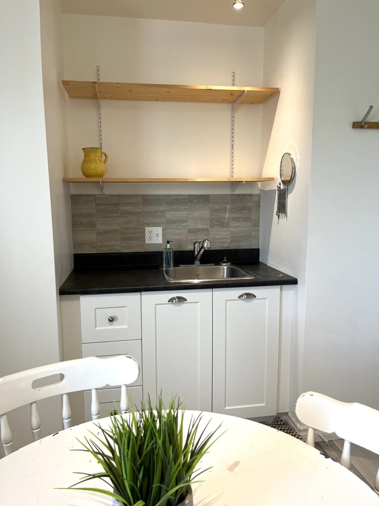 • Un évier et des armoires dans la chambre