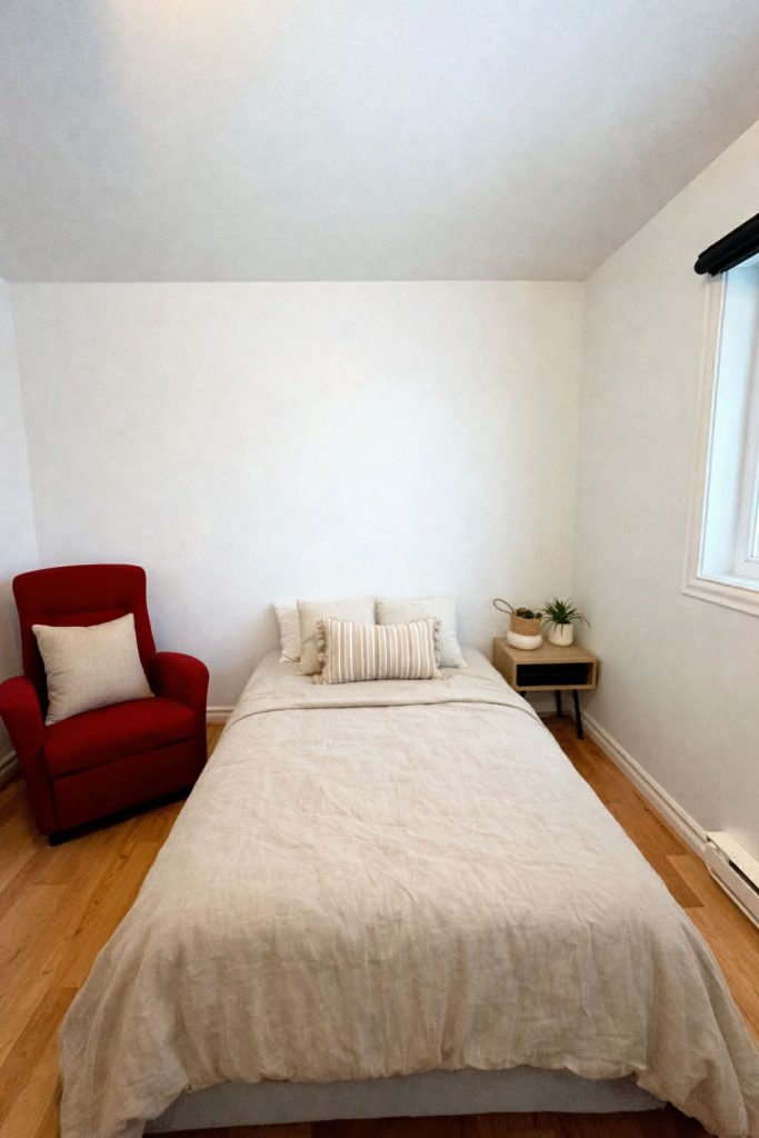 Chambre entièrement meublée ( lit double, commode, bureau, table de nuit, chaise, fauteuil )
